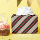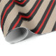 Papel de embalagem de cor kraft rústica, de cor feriada, com faixas vermelhas finas centradas nas faixas largas pretas.