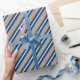 Papel de embalagem de cor kraft rústica, de cor feriada, com marinho azul, com listras brancas centradas.