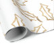 Papel De Presente Feriado tirado mão Hollies da folha Dourado