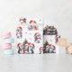 Este belo papel de embrulho de Natal apresenta um padrão único de pinguins em roupa vermelho se divertindo enquanto celebra as férias de inverno. Pinguins alegres decoram árvores de Natal, encontram família e amigos, e skates de gelo, então este design é perfeito para presentes festivos. Esta design está sobre um fundo branco.