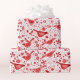 Papel De Presente Feriados de Natal Vermelhos com Aquarelas de Aves