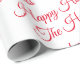 Este papel de embrulho festivo é acentuado com Feliz Feriados, ou sua própria mensagem pessoal, e o nome da família em vermelho rico, fazer perfeito para a época de Natal.