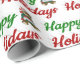 Enrolando papel com feriados felizes em texto verde e vermelho 3D e um ursinho de pelúcia com presente. Disponível em vários estilos e tamanhos.