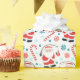 Embalagem de presente de pesca com Papais noeis de pescadores que possuem uma vara de pesca rodeada de guloseimas de Natal.