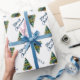 Papel de enrolamento Festivo de Natal em árvore de Natal Desenho de aquarela artística colorida de uma árvore de Natal. Adicione seu nome e desejos de feriado.
