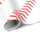 O divertido tema de baseball empacotando papel anúncios um toque especial divertido para presentes para jogadores e fãs de beisebol. Com um padrão uniforme de beisebol vermelho em um fundo branco. Excelente para festas de aniversário temáticas de beisebol ou oferta para jogadores de beisebol em eventos especiais como noite de mais velho ou Natal.
