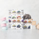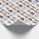 Atenção a todos os pequenos animais de festa! Preparem-se para aumentar a diversão com nosso papel de embrulho de festa de aniversário de caminhões monstro para crianças. Adornado com caminhões monstro adoráveis e vibrantes, este script de tipografia moderna convida você a se juntar à celebração.