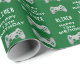 Papel de enrolamento de Festa de aniversário do Controlador de Jogos de Vídeo Gamer. Controladora de jogos em fundo verde. Adicione seu nome e sua idade.