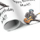 Exclusivamente a partir de designs4 dias, nosso papel de embrulho de festa de aniversário de rocha e rolo. Parte da nossa coleção de festas de aniversário de esqueletos rochosos e roxos.