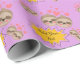 Papel de Embrulho para Festa de Chã de Bebê com Padrão de Preguiça Fofa e Corações Rosas
