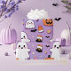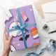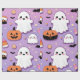 Adicione uma reviravolta divertida e encantadora aos presentes da sua estação assustadora com este papel de embrulho de Halloween pastel fofo! Apresentando adoráveis fantasmas sorridentes, abóboras felizes de jack-o-lanterno, doce milho doce doce, lólipops, morcegos e estrelas — todos colocados contra um fundo púrpura macio de lilás. Perfeito para festas de Halloween, presentes infantis, aniversários de outubro e amantes pastéis que preferem "fofo" a assustador. Este design do estilo kawaii torna o empacotamento tão divertido quanto desempacotar!