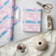 Este papel de embrulho brilhante e giro apresenta um tema bonito, rosa, Malibu Beach. A água de aparência realista é ilustrada ao longo do fundo, que se parece com a água cristalina de uma praia ou piscina tropical. Uma bela cadeira de piscina e um guarda-chuva são fotografados à direita, com um flamingo flutuante rosa na água. Um quadro brilhante cor-de-rosa borda a imagem. Uma amostra de mensagem de Parabéns é impressa no centro, com um nome de exemplo impresso abaixo em uma fonte elegante de script. Você pode personalizar o papel de empacotamento para incluir seu próprio nome personalizado ou texto.