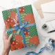 A seamless holiday pattern featuring layered Christmas ornaments with plaid textures, snowflakes, trees, and decorative stripes in rich green, red, and warm earthy tones.