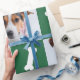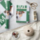 O osso branco festivo do cão trata-se de um papel de fundo verde de Natal que embrulha o papel com colagem fotográfica e o monograma do seu amigo peludo.