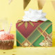 Este belo padrão de presente apresenta um vibrante esquema vermelho, verde e dourado. O design é intrincado e sem costura, com formas geométricas e detalhes intrincados que criam uma sensação festiva e luxuosa. Esse padrão é perfeito para embrulhar presentes para qualquer ocasião especial, desde aniversários e casamentos até feriados e aniversários.