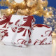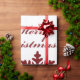Padrões de Natal Vermelho Festivo, Férias Festivas, Árvore de Natal, com árvores de Natal e flocos de neve, e as palavras "Feliz Natal" num padrão repetitivo. Um papel de embrulho festivo e divertido.