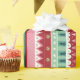 Brilhe seus presentes de férias com este papel de embrulho de listras divertidas e festivas. Padrão geométrico de Natal alegre com uma mistura colorida de listras decoradas, sinos de joias e árvores de Natal. Arte original de Marketa Stengl.