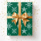 Papel De Presente Festivo Verde Flocos de Neve Natal