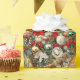 Esta imagem é um padrão de papel de embrulho de Natal, estilo vintage, que apresenta uma colagem festiva e nostálgica de elementos de férias. Inclui representações tradicionais de Papai Noel com um saco de brinquedos, um bonitão de neve, e um casal vitoriano vestido de traje menstrual. O design é embelezado com poinsetos, bagas ocas e vários Enfeites de natal ornamentados em tons de vermelho, ouro, prata e verde. O fundo apresenta cenas de floresta nevada com ferramentas decorativas e veados, melhorando o encanto do mundo branco e do mundo antigo. O padrão inteiro irradia uma sensação quente, brilhante, e de feriado opulente, perfeita para uma celebração de Natal clássica.
