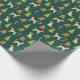 um papel de embrulho com tema de Natal com um padrão repetitivo. O padrão consiste em vários elementos, incluindo chicotes vestindo chapéus vermelhos de Papai Noel e lenços vermelhos, árvores verdes de Natal decoradas com ornamentos vermelhos, gengibres e doces. A cor de fundo do papel de embalagem é verde-escuro, o que contrasta bem com os elementos coloridos. O design é festivo e caprichoso, fazer adequado para embrulhar presentes de Natal, especialmente para amantes de cães ou para aqueles que apreciam um tema de feriado lúdico.