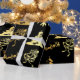 Papel De Presente Figuras douradas do Natal no papel de envolvimento