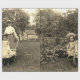 Esta bela imagem é uma digitalização de um original de um tipo de vidro negativo na década de 1890. Uma mãe e suas duas filhas no jardim. Ao fundo vemos nasturtium e pequenas flores. Adicionámos um toque de cor a esta imagem a preto e branco. Esta imagem fará uma bela adição à casa temática do jardim ou jardim