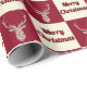 Aqui temos um papel de embrulho que apresenta um veado de filigrana colorido de creme e as palavras Feliz Natal em um creme e fundo vermelho profundo. Este documento está disponível em vários tamanhos e corresponde a outros papéis de embalagem, papéis de tecidos, sacos de presentes e um cartão de saudação. Isso certamente fará uma adição perfeita aos seus presentes nesta temporada de festas.