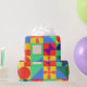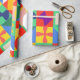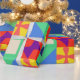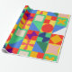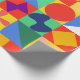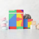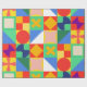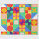 Este papel de embrulho tem um design de quadrados Bauhaus com formas ímpares dentro, repetido através do design.