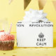 Hora de uma revolução, não diria? Um slogan divertido e oportuno "Fique Calmo e" que diz tudo.