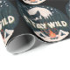 Um lobo fica silenciado uivando contra uma lua de cheio, cercado por uma floresta e uma fogueira entre duas tendas. As palavras "Fique Selvagem" são exibidas com destaque, enfatizando um sentido de aventura e natureza.