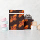 Um corvo brilhante e feroz (Corvus corax) voa com asas espalhadas sobre fundo escuro.