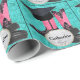 Boné de formatura sentado em botas de cowboy. O fundo é impressão de couro turquesa com cinta de cowboy com fivela de fecho que tem campo personalizado para personalizar o nome do formando.