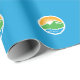 Wrapping Paper with a design with the flag of Provo, Utah. A blue flag with the Provo City logo in the center. The logo represents the Utah lake and nearby mountain peaks with the rising sun in the background