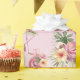Um flamingo floral rosa e uma folhagem exótica em fundo de gradiente rosa