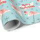 Papel De Presente Flamingo Santas Azul Feliz Natal