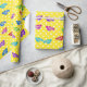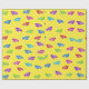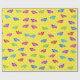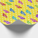 Flip-flops colorido em bolinhas brancas e fundo amarelo.