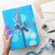 Fundo azul brilhante com flocos de neve roxos e luzes brilhantes para imitar a neve ou as luzes de Natal.