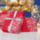 Enrole seus presentes com este papel de embrulho ousado e elegante, com grandes mandalas brancas em floco de neve desenhadas à mão sobre um fundo vermelho. Adicione uma arco branca para embrulhar o presente de Natal.