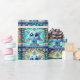 Flocos de neve adoráveis adoram este papel de embrulho de Natal. Olhos grandes, cores brilhantes.