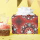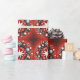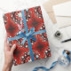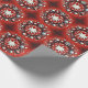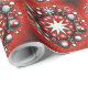 Um belo fundo vermelho rodeado por bolas de neve e flocos de neve no estilo de pop art