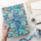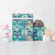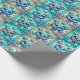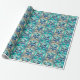 Flocos de neve adoráveis com fundo de azul e ouro. Papel de embrulho de Natal.