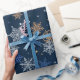 Papel Azul De Enrolamento Com Flocos De Neve Dourados, Prateados E Azuis A Cair