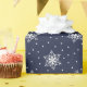 Enrole seus presentes de Natal ou feriados neste clássico papel de embrulho branco com formato de floco de neve, mude o fundo azul marinho da meia-noite para suas cores favoritas para misturar e combinar para uma apresentação divertida.