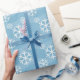 Papel De Presente Flocos de neve brancos em azul