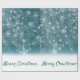 Flocos de neve brancos e tendências e estrelas em fundo azul. Feliz Natal