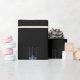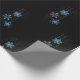 Flocos de neve azuis elegantes com diamantes de borda pingando no chão negro.