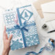 Flocos de neve de inverno sem costura pinguins de veado branco azul