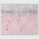 Papel De Presente Flocos de neve de Natal Elegante Rosa Dourado Silv