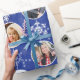 Teste padrão do floco de neve do Natal a que você pode facilmente adicionar 10 de suas fotos de família favoritas. Design azul elegante com flocos de neve sparkling. Alegre e brilhante!