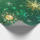 Fundo de Natal verde com flocos de neve de joias verdes e douradas. Flocos de neve ouro. Natal.